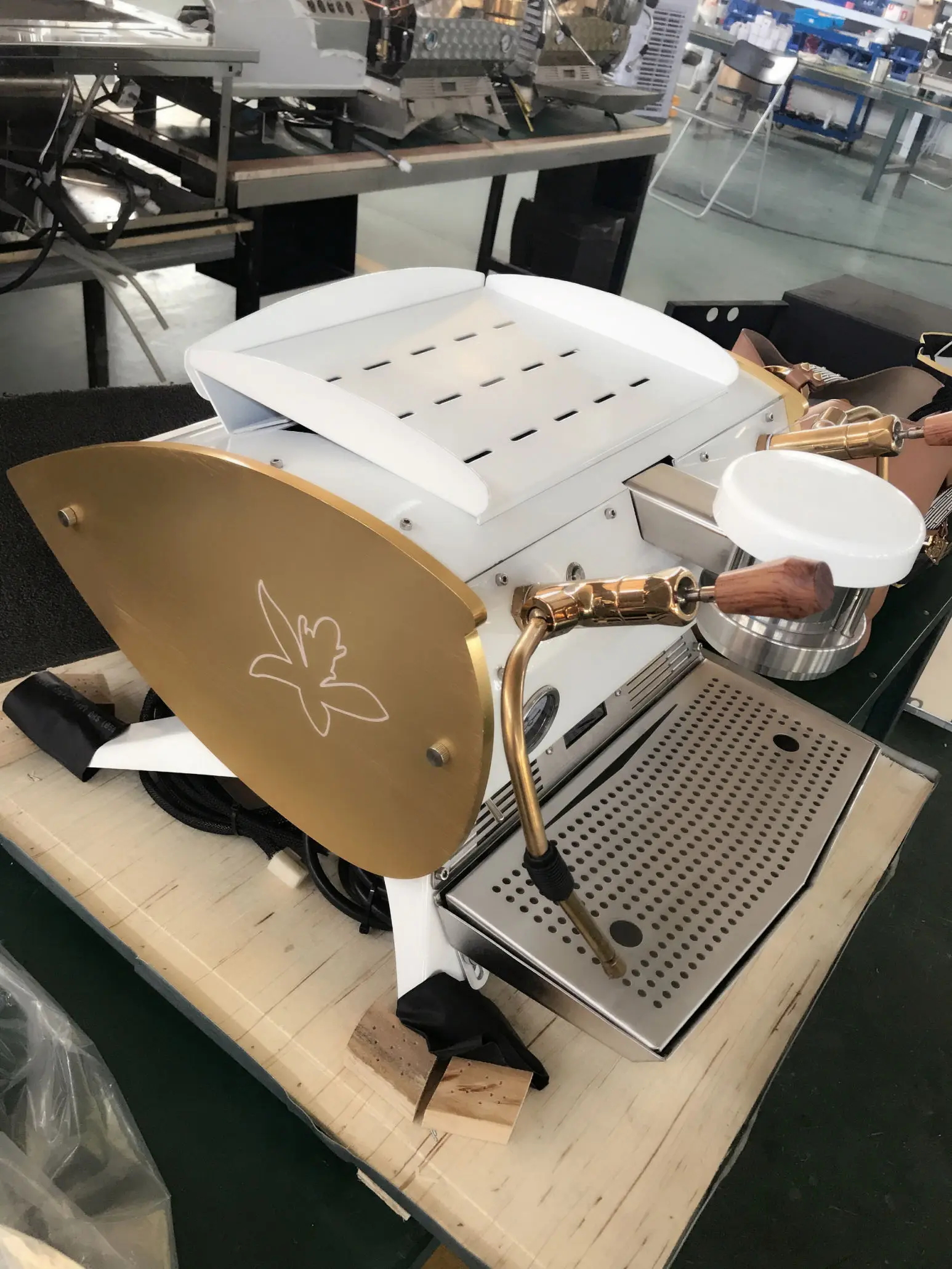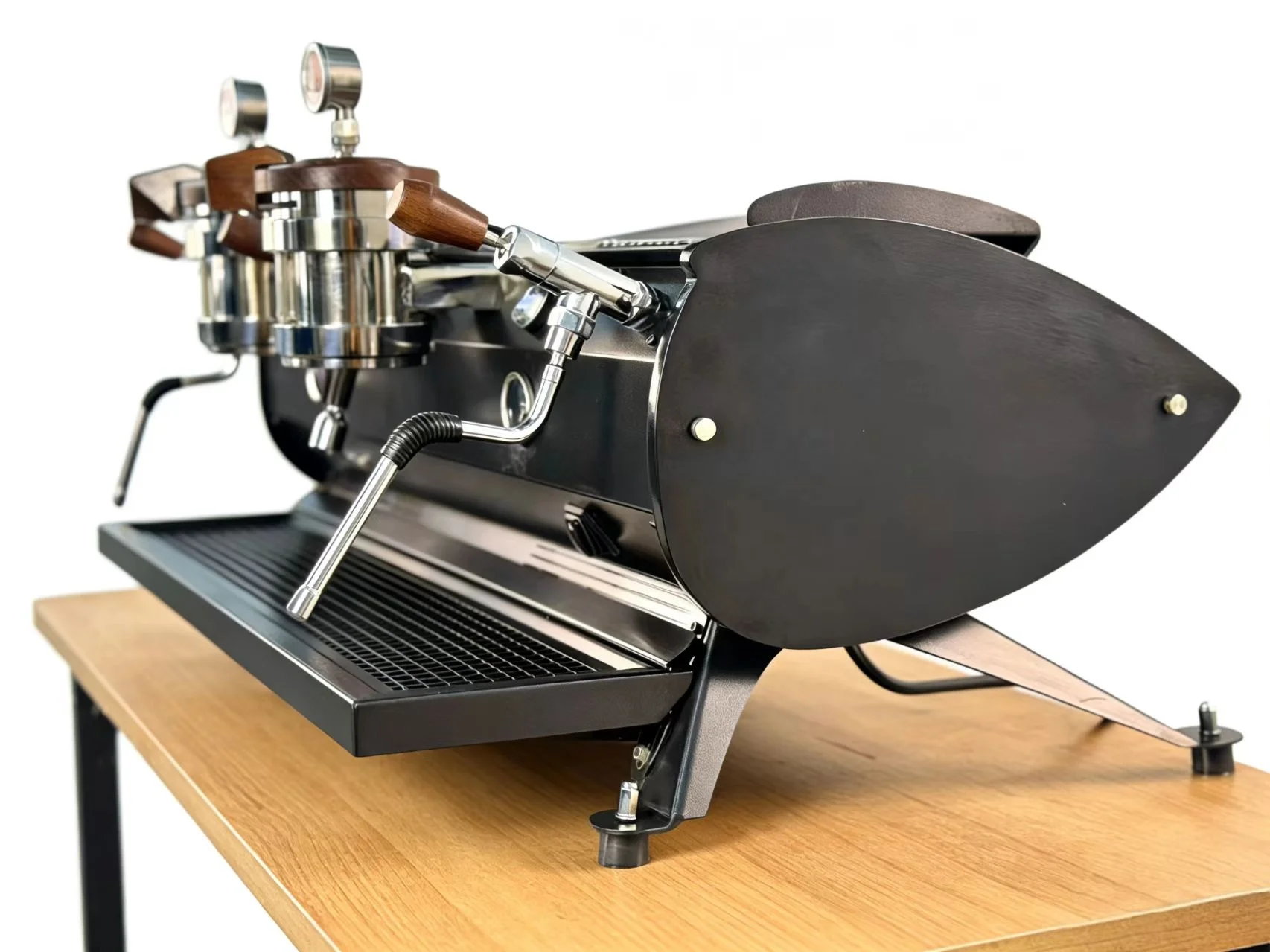 ボイラー容量:2基のボイラー(スチーム用10.8L、コーヒー用4L)、電圧(V):220~240、消費電力(W):4000W、独立型デュアルボイラー方式、デュアルPID制御システム、スチーム温度および抽出温度をそれぞれ個別に調整可能、業務用ロータリーポンプ搭載デュアルボイラー、液晶ディスプレイシステム、飽和バブルヘッド、プレブリューイングシステム(流量設定可能)、セカンドカウント機能、手動/自動モードをオプションで選択可能、本体全体のカラーカスタマイズ対応、機器サイズ:900×570×480mm 木箱サイズ:98×55×69cm、総重量(G.W.):73kg