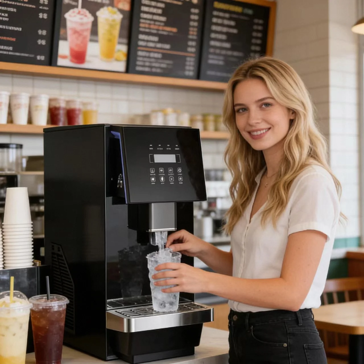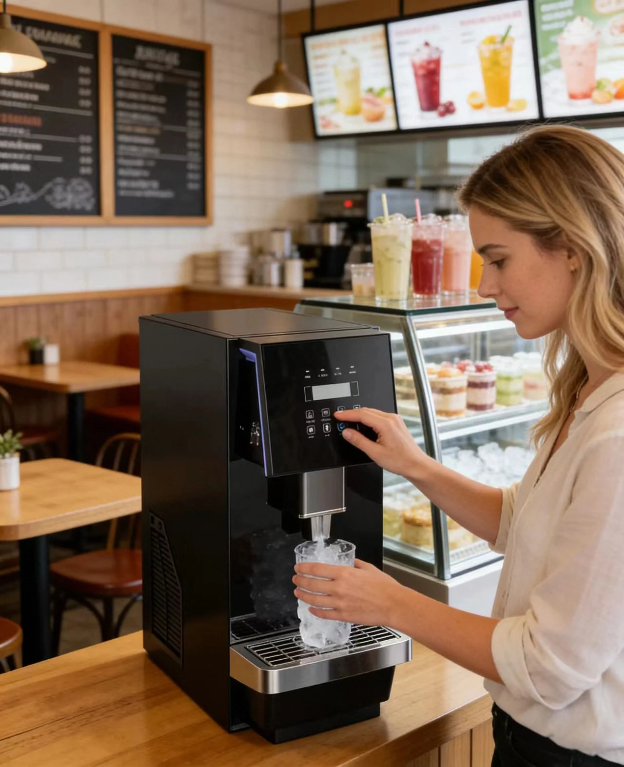 1. Funkcja ciągłego produkcji lodu 2. Funkcja pobierania lodu, wody i wody z lodem
