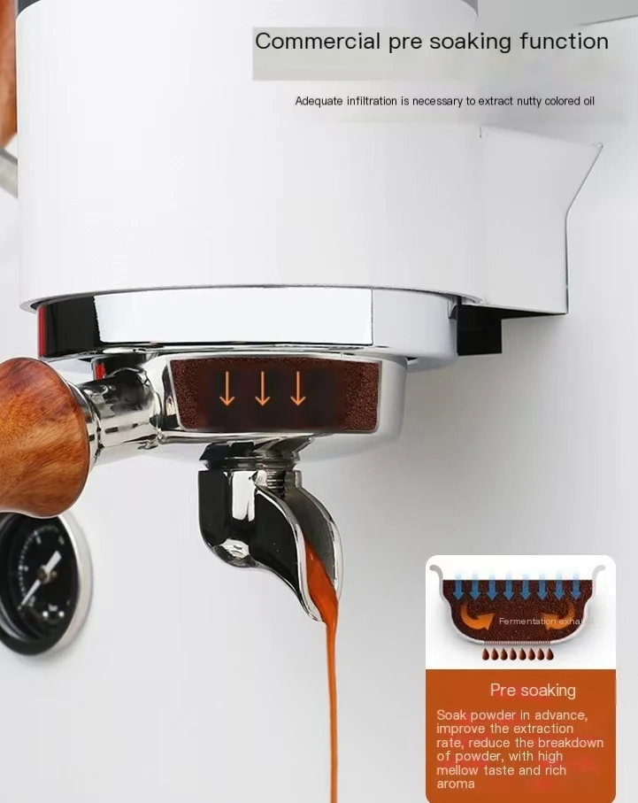 1. Double boiler design, hot water circulation saturated brewing head, whole machine copper pipe connection.